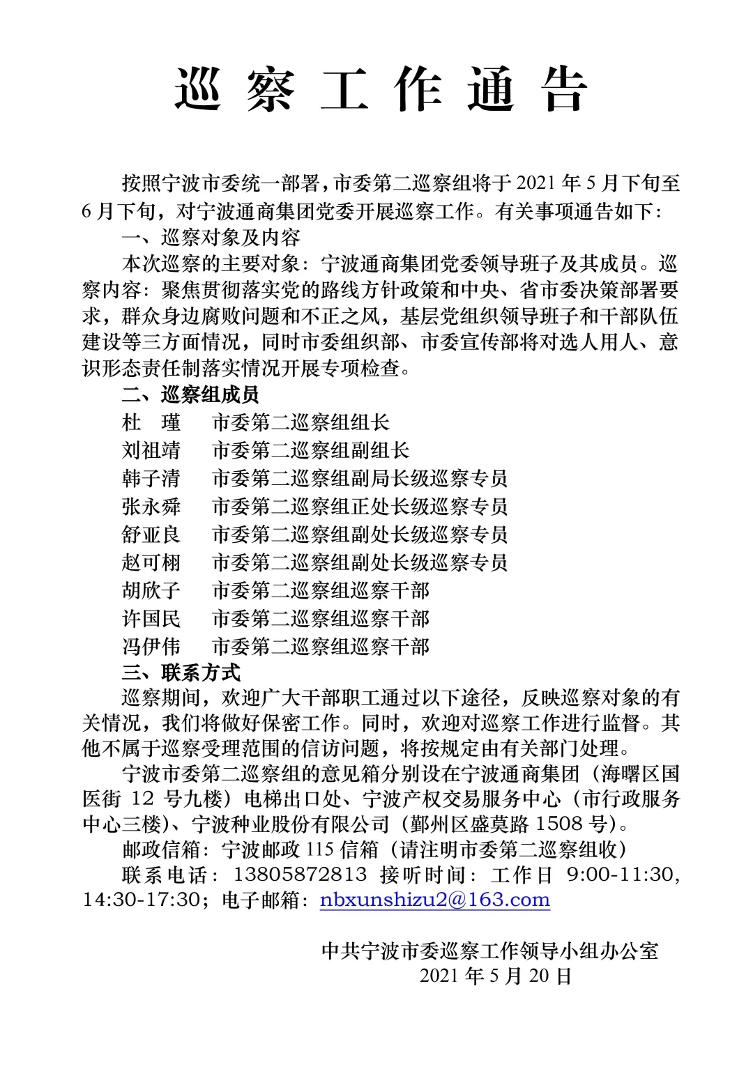 巡察工作通告