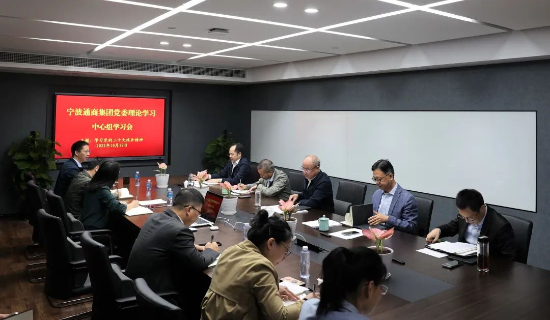 10月19日上午,宁波通商集团党委理论学习中心组专题学习二十大精神。集团党委书记、董事长宋达军主持会议并讲话,集团领导张旦、梅旭辉、庞文轶、楼松松,部门及子公司负责人参加。
